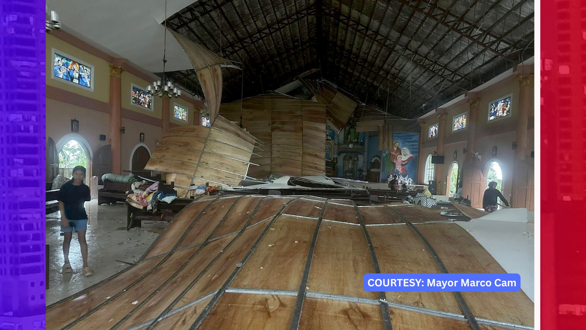 Sa larawan na ibinahagi ni Batuan Mayor Marco Cam, natuklap ang kisame ng simbahan at bumagsak sa sahig.
